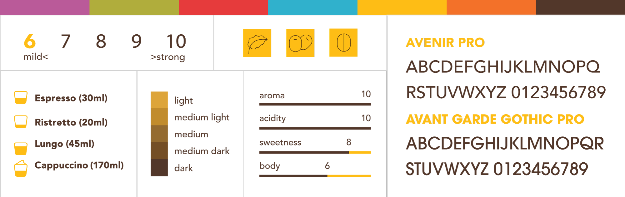 In order to convey the subtle differences between each type of coffee, an infographic guide was incorporated into the packaging, highlighting the qualities of each coffee variant in an accessible language. The infographic empowered buyers with a deeper understanding of the coffee they were selecting.