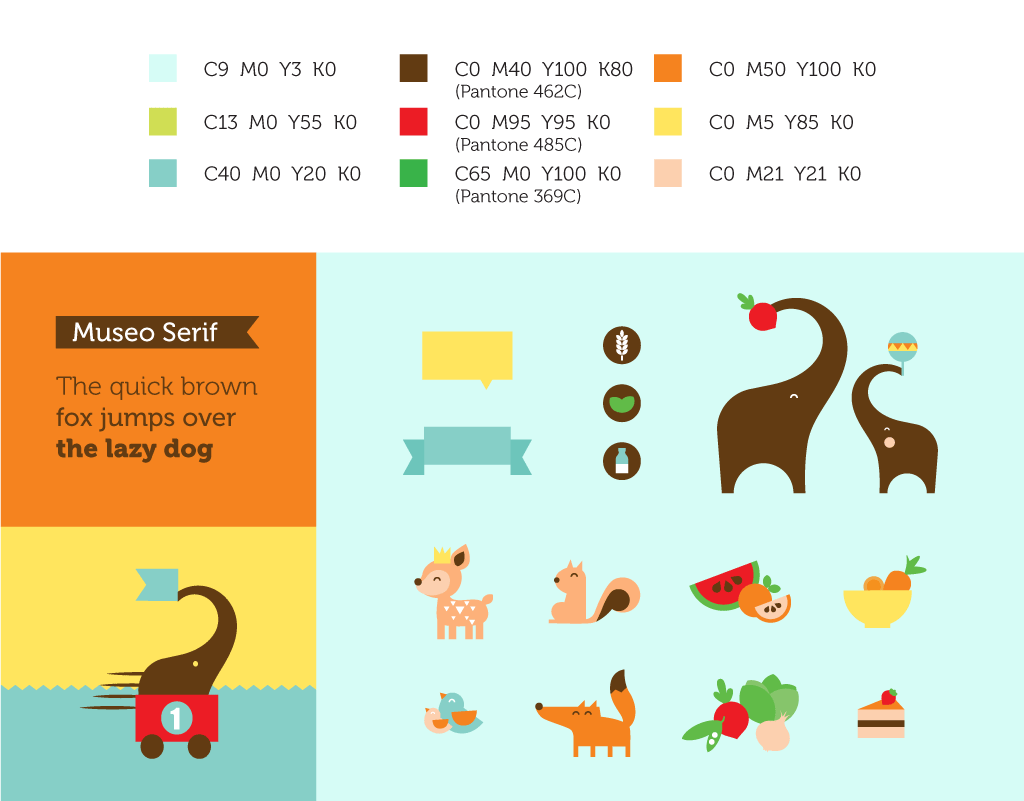 In print products like brochures, business cards, and menus, the lively color scheme and eye-catching geometric graphics utilized in the actual store were incorporated.